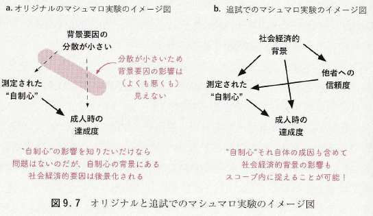 「マシュマロ実験の真の教訓は、『 “自制心” が人生の成功の鍵』といったものではなく、『研究者には安易な一般化を我慢する “自制心” がしばしば著しく欠けている』ことを示したことにあると私は考えています。」